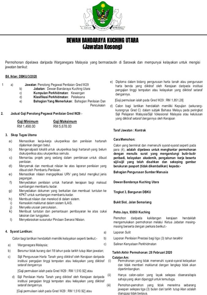 - Nama Majikan: Dewan Bandaraya Kuching Utara (DBKU)